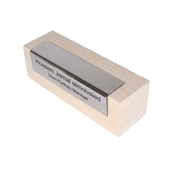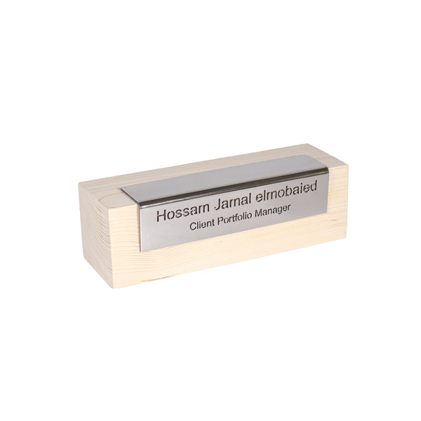 نحفر اسمك على الستاينلس ستييل مثبت على الخشب الابيض